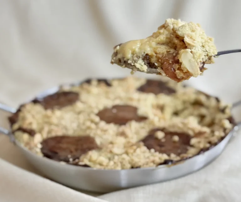 Nossa versão da torta doce italiana, com farofa crocante de amêndoas.